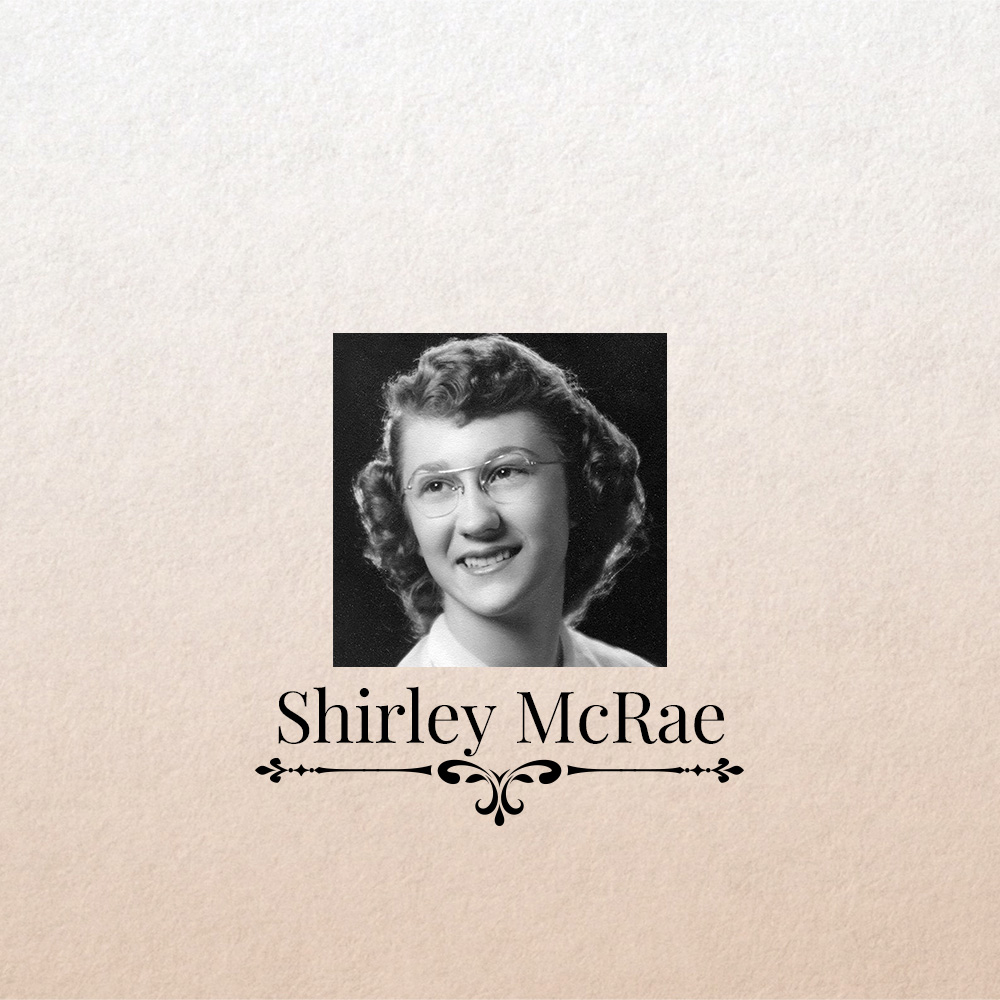 Shirley was born to Morris Kintschi and Anna (Tanner) Kintschi on April 29, 1934, in Edwall, Washington. She graduated from Edwall High School in 1952, where she met her husband-to-be, John McRae. John and Shirley were married in 1954, and they lived in Redondo Beach, California, while John served in the U.S. Navy. They returned to Spokane in 1955, living on Five Mile Prairie, then at Dartford, and finally in the house that John designed and built in Deer Park in 1976, where the family lived for over 42 years.